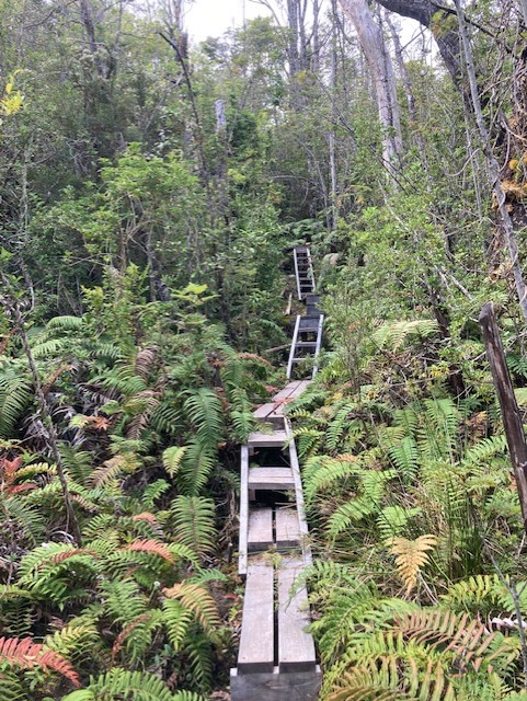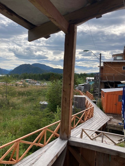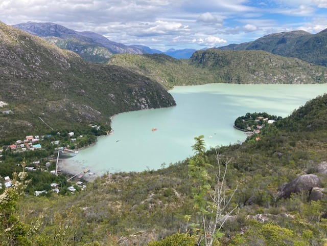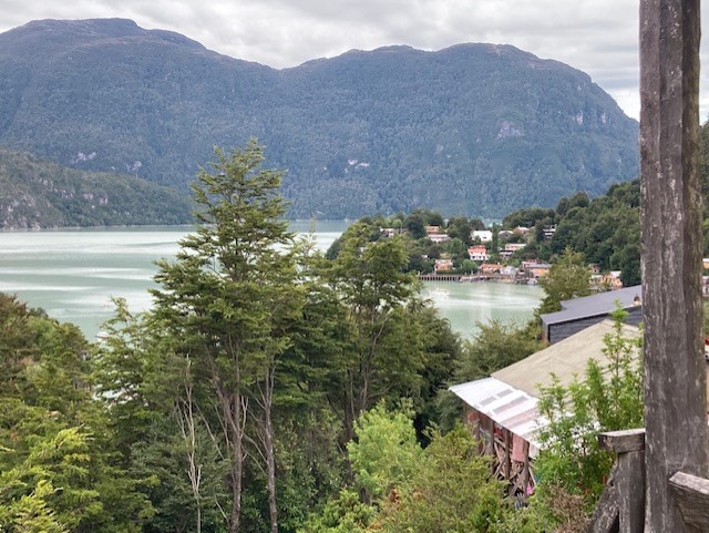 The final day was the longest paddle of the trip so we arrived in Coletta Tortel fairly late, tired and hungry. We’ve all heard about Venice, Italy which has become famous and romanticized world-wide with its canals and Gondoliers. Tortel is basically unknown and really cool! There are no streets in Tortel. You cannot take your car into the town…because like I just wrote…there are no streets. The town sits on a steep mountainside in the fjords, and is connected by wooden walkways–a main boardwalk and connecting boardwalks and/or stairs up to residences, restaurants or tiendas. It is adorable, unusual and picturesque. Established by the Chilean government as a fishing town, ironically (we are told) no one fishes. It is in continual construction, either fixing, rebuilding or creating new walkway. We hauled all of our gear to a small hotel (residence with a few rooms to rent) where we had a final dinner with our river crew. Pascal a.k.a “Frenchie” was predictably funny with his dry humor, Gary was emotive and just basically his happy self. Sergio was tired but content. I enjoyed a glass of wine with our beef dinner. It was all smiles for Sam and I, having wrapped up this chapter of our Chile trip. Still so much more to explore, but already we’d made new friends and enjoyed a trip of a lifetime… On to the Patagonia National Park!!